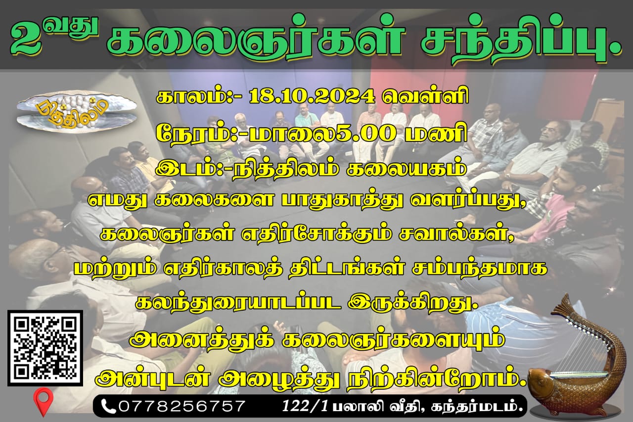 முதலாவது கூட்டத் தீர்மானத்துக்கு அமைய இரண்டாவது கூட்டம் 18.10.2024 அன்று நித்திலம் கலையகத்தில் நடைபெற்றது. முதலாவது கூட்டத்துக்கு வராத பலர் இக் கூட்டத்துக்கு வந்திருந்தனர். இரண்டாவது அழைப்பிதழில் குறிப்பிட்டவாறு விடயங்கள் கலந்துரையாடப்பட்டன.